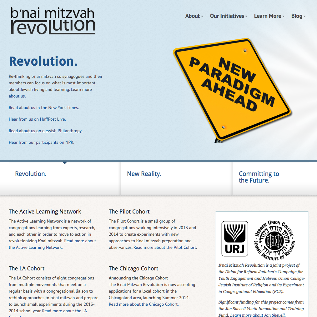 Developed and maintained web presence and online learning/collaboration tools for B’nai Mitzvah Revolution, a fledgling organization and joint project of HUC-JIR and the URJ’s Campaign for Youth Engagement.